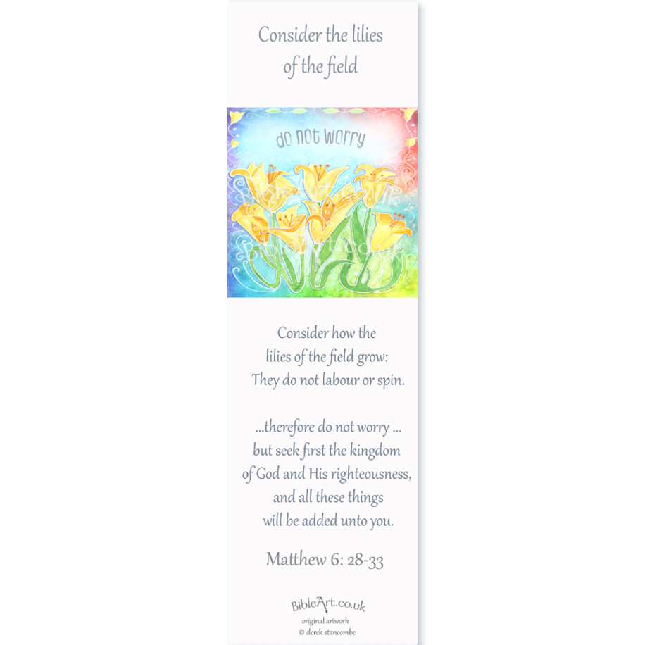 Consider how the lilies of the field grow: They do not labour or spin. Yet I tell you that not even Solomon in all his glory was adorned like one of these.....