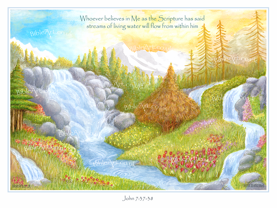 Rivers of Living Water - (Waterfall landscape - A4 / A3 art print)